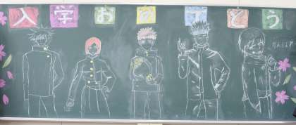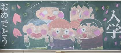 皆さんの新たなスタートをお祝いしたくて各教室の黒板を彩らせていただきました。