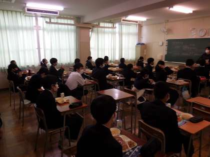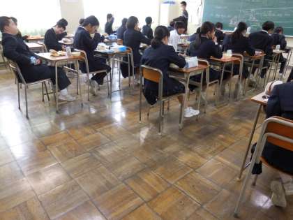 4月15日(木)3年生の給食時間の様子です。おいしそうに食べています。
