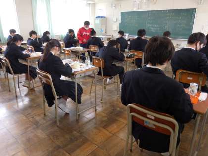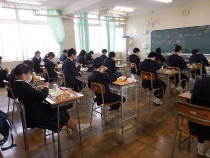 4月15日(木)2年生の給食時間の様子です。おいしそうに食べています。