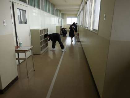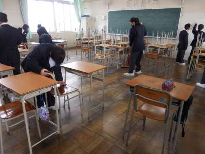 4月16日(金)教室、廊下、下駄箱の掃除を頑張っています。みんなが協力してきれいな天下茶屋中学校にしています。