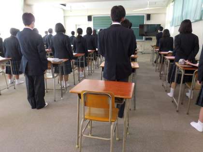 4月19日(月)1年生は音楽室で校歌を歌っています。