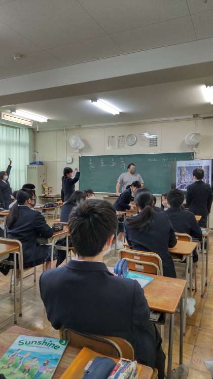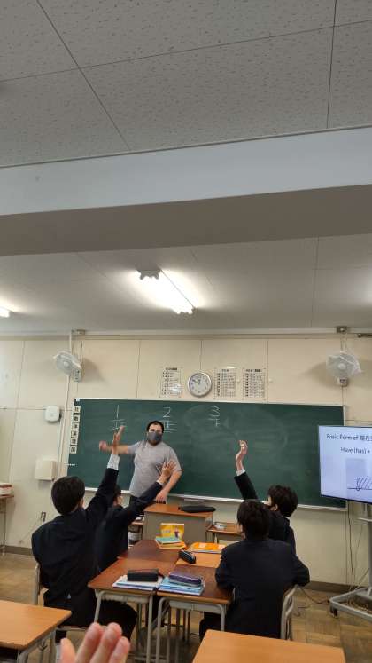 今週も、「現在完了」という文法を、身近なニュースや先生撮影の写真などを使って、生徒たちも楽し気に学習していました。あててもらおうと「ハイハイ」と積極的に手を挙げる姿が見られました。