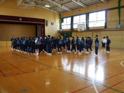 4月20日(火)新入生オリエンテェーションを行いました。信太山での実施を変更して校内で行いました。子ども達は少し緊張しているようですが元気に登校しています。いよいよ始まります。生徒会のみなさんも開講式であいさつをしてくれました。