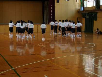 4月21日(水)新入生オリエンテェーション2日目です。2日目の開講式、集団行動の様子です。