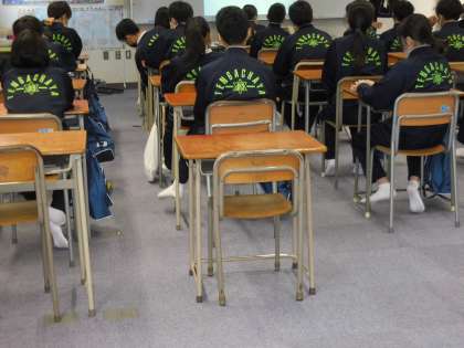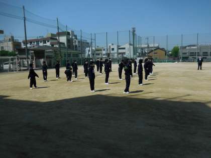 4月21日(水)新入生オリエンテェーション 2日目。テストの受け方と運動場であいさつの練習をしています。