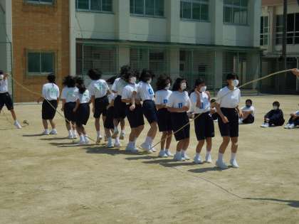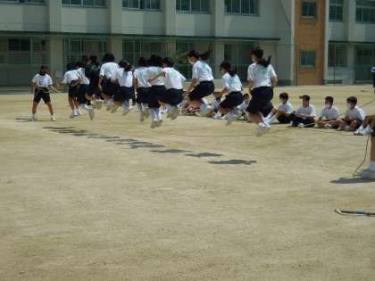 4月21日(水)新入生オリエンテェーション2日目。大縄跳び大会の様子です。みんなが協力して頑張りました。