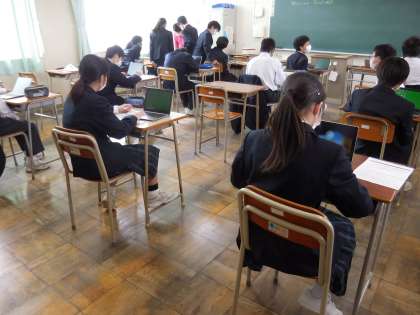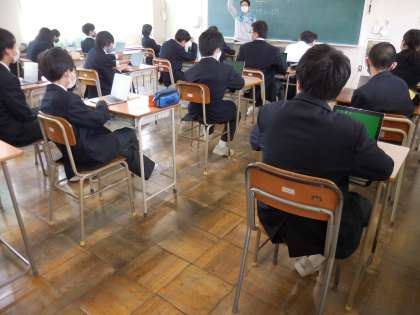 4月23日(金)オンライン授業に向けて接続テストを行っています。2年生の様子です。