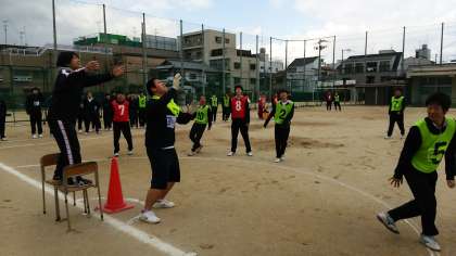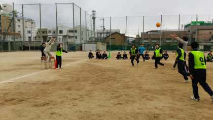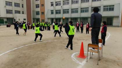 2月27日、3年生球技大会を実施しました。種目はポートボールでした。先生が台の上に立ちゴールとなり、ゴール目指して協力して戦いました。生徒同志の試合が終わってから、生徒代表と教員の試合もおこないました。