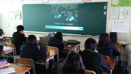 「私たちの道徳」(文部科学省発行)とドキュメンタリー映像を使い、互いに協力しあうことの大切さについて考えました。内容は、卒業の歌の定番となった「旅立ちの日に」ができるまでのことをとりあげたものです。この教材をとおして、自分たちの卒業式をどのように迎えるかを考えました。