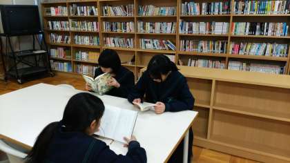 1年生では、クラスごとに図書館に入り、自分の気にいった本を読む活動を始めました。学級文庫の利用とともに、図書館利用の一層の推進を図っていきます。