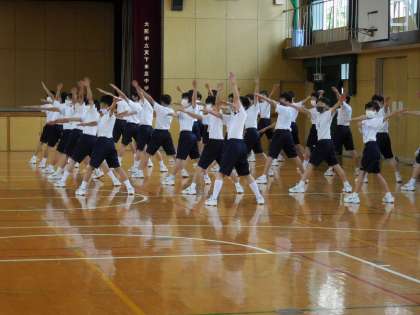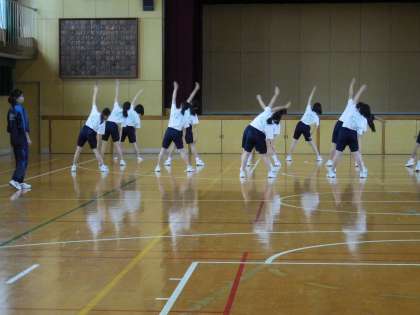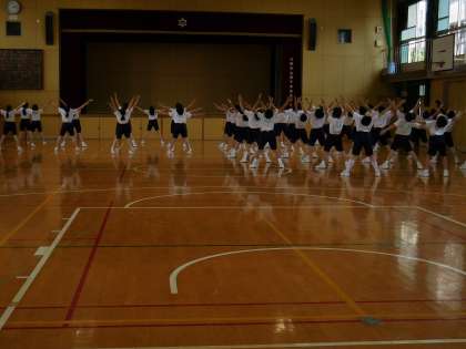 5月7日(金)2年生は体育館で体育。ラジオ体操です。