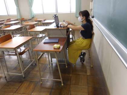 5月17日(月)今日から時程が変わります。朝はオンライン学活かプリント学習です。オンライン学活の様子です。