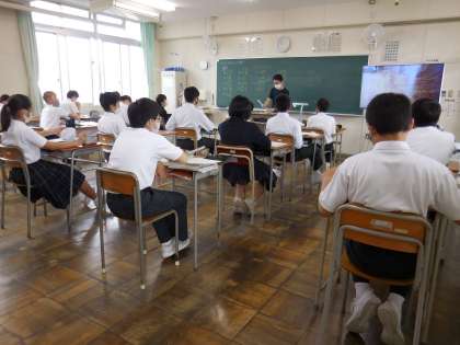 5月21日(金)2年生の授業風景です。みんな頑張って授業を受けています。上から英語、社会、数学です。
