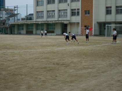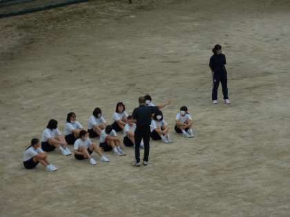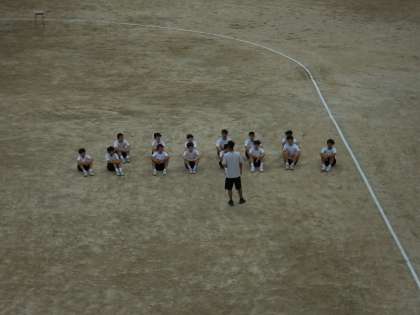 5月24日(月)今日から通常、6限の授業です。運動場では3年生の体育、50m走の測定です。