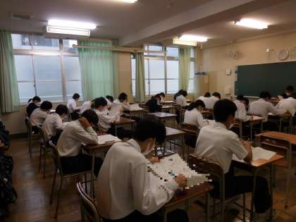 5月27日(木)3年生は全国学力学習状況です。真剣にテストを受けています。3年生の廊下には子ども達の真剣な凛とした空気が流れています。
