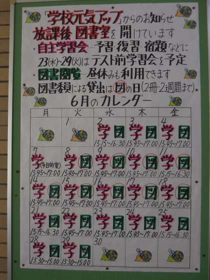 6月1日(火)今日から6月です。元気アップ6月のカレンダーです。配布文書にも掲載しています。