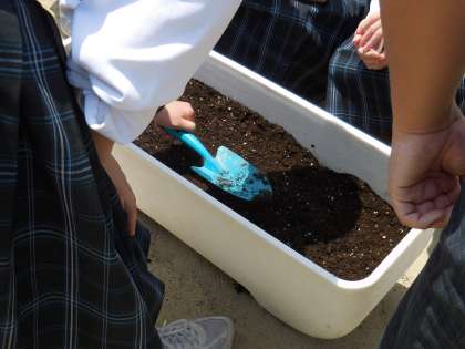 6月8日(火)2年生は技術で栽培、ラディッシュを植えています。