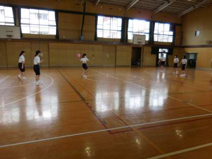 6月14日(月)午前中はまだ少し涼しいです。3年生男子は200m走、女子はマットのテストが早く終わったのでドッジボールです。