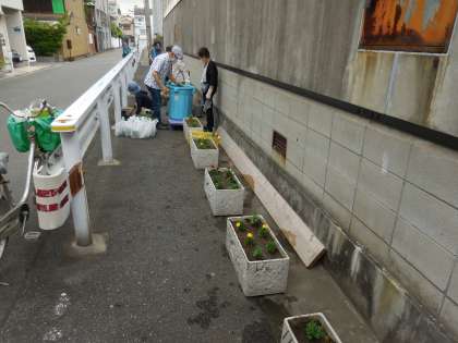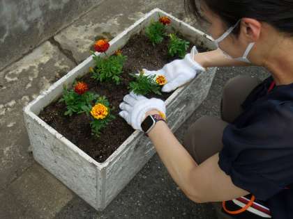 6月15日(火)朝から地域のみなさんに学校西側と玄関のプランターにきれいな花を植えていただきました。多くの地域の皆様にお越しいただきました。暑い中ありがとうございました。