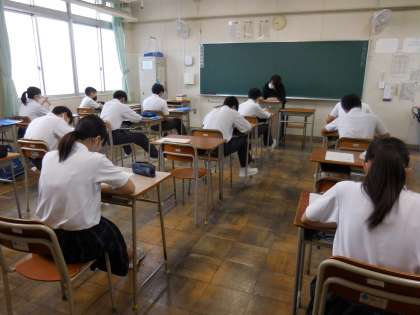6月16日(水)2年は朝の時間を活用して勉強しています。頑張れ!!上から1組、2組、3組です。