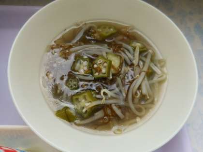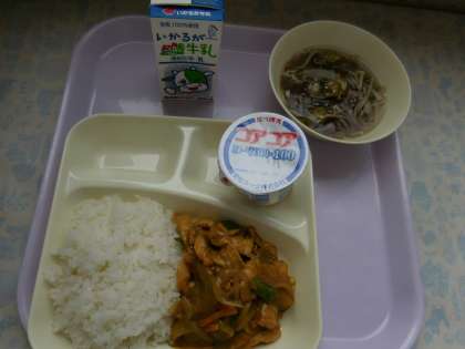 6月17日(木)の給食は和風カレー丼、モズクとオクラのとろり汁、ヨーグルト、牛乳です。和風カレー丼は豚肉、うすあげ、たまねぎ、にんじん、青ネギ、しょうがが入った和風味です。モズクとオクラのとろり汁は鶏肉、ブラックマッペもやし、オクラ、えのきたけ、もずくが入っています。暑いときに食べやすいメニューです。おいしかったです。ごちそうさまでした。