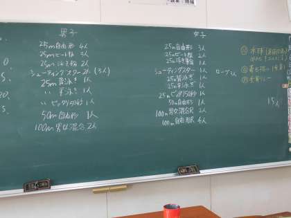 黒板には種目が書かれています。