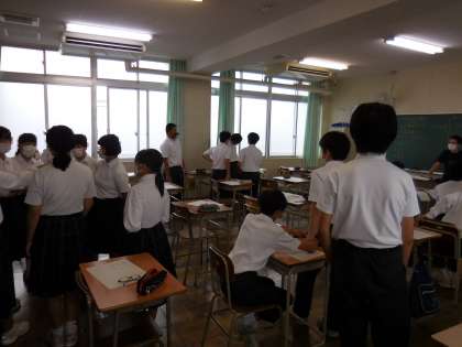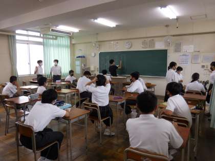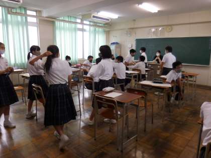 7月7日(水)2年生は一泊移住に向けてのクラスでの取り組みです。今日はバスの座席を決めています。どのクラスも楽しそうです。
