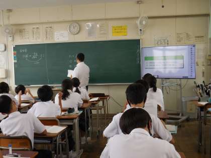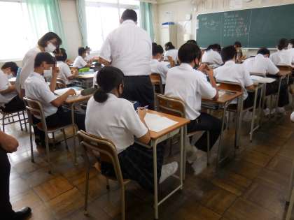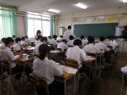 7月8日(木)1年生の数学の授業力向上で大阪市教育センターより来ていただいています。1年生は一所懸命勉強しています。
