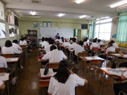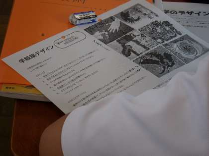 7月12日(月)1年生は美術で体育大会で学級旗の制作についての授業です。夏休みの課題です。
