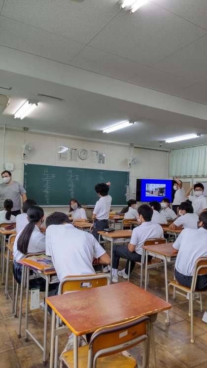 Alex先生、今週も楽しい授業を考えてきてくださいました。楽しいだけでなく、文法間違いも厳しく直してくださいます。子供たちが自然に気づくようにヒントを出しながら。Alex先生の3年生での授業は、今週で終了となりました。2学期は、2年生でTTの授業をしてくださいます。最後の授業を受けた後、自然に出たこどもたちからのThank you very much.のことば。Alex先生は、You're welcome.と改まって答えてくださっていました。