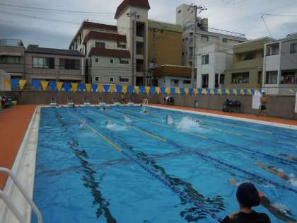 7月16日(金)3年生は水泳大会です。天下茶屋中学校のプールに入るのは今日が最後です。