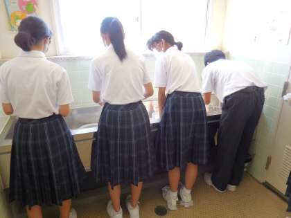 7月19日(月)梅雨明け、夏本番の天気です。1学期も明日で終わり。子ども達は暑い中、大掃除に汗を流しています。雑巾がけをしています。