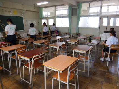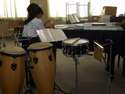 7月26日(月)朝から厳しい暑さです。吹奏楽部のみなさんはコンクールに向けて一所懸命練習しています。パート別練習です。