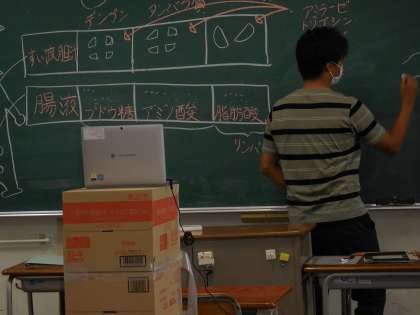 9月2日(木)本日より授業の様子を配信しています。教室の真ん中にパソコンを置いて撮影、送信しています。