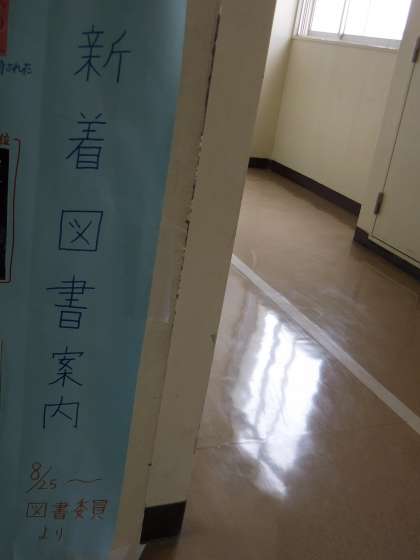 9月2日(木)図書委員が新着本を紹介してくれています。読書の秋到来。紹介されている本をてにとってみるのもいいですね。