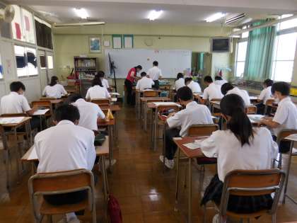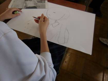 9月16日(木)3年生は美術で自画像を描いています。自分の写真を見ながら丁寧に描いています。よく描けています。