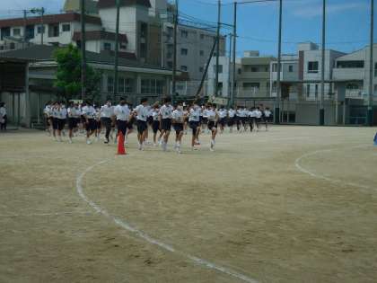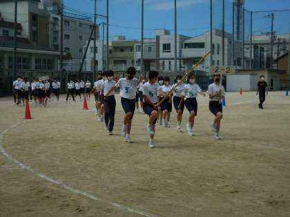 9月21日(火)晴天の下2年生は体育大会に向けて学年別練習、行進の練習です。