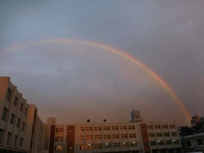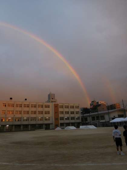 9月21日(火)テント設営の最中にきれいな虹が現れました。明日もいい日になる予感です。