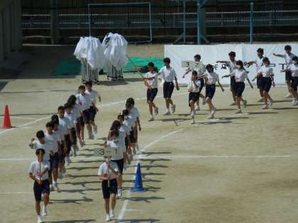 9月22日(水)3年生は体育大会に向けて学年練習です。少し暑くなってきましたが頑張っています。