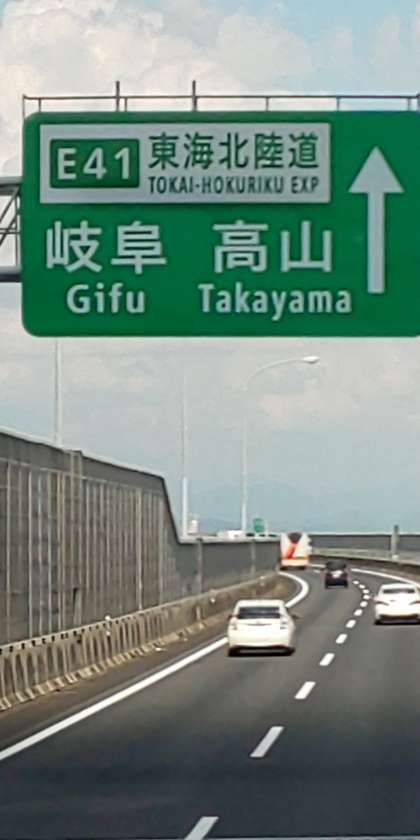 10月4日(月)バスは順調に走っています。東海北陸自動車道に入りました。案内に高山が出ています。