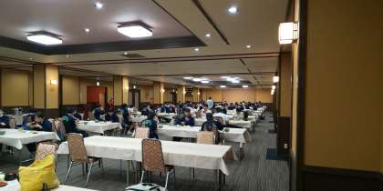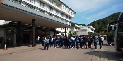 10月5日(火)ホテル郡上八幡に着きました。昼食です。天気は快晴。気温は27℃。少し暑くなってきています。みんな元気です。