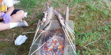10月5日(火)体験活動の様子です。あまごが美味しいそうに焼けています。