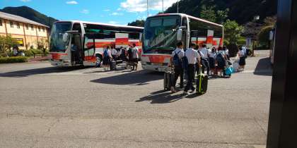 10月6日(水)全てのプログラムを無事に終えて退所式のち、バスは子ども達の思い出を乗せて学校へ向かいます。13:54、予定より少し早くホテル郡上八幡を出発しました。この後、随時、帰校情報を掲載いたします。