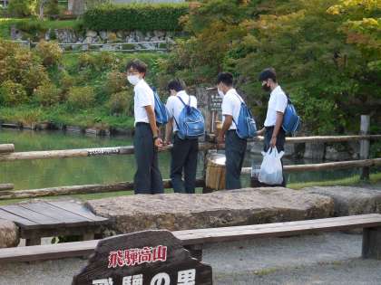 10月7日(木)修学旅行の様子を掲載します。飛騨の里での活動の様子です。宿に着きました。