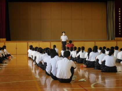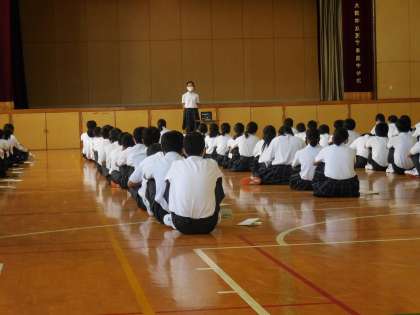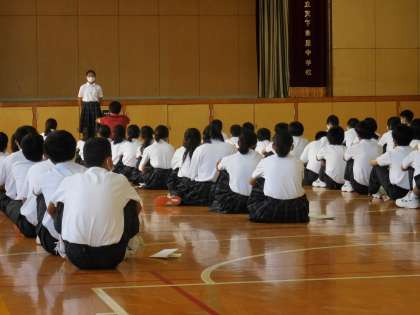 10月9日(金)生徒会選挙、立会演説会を行いました。1年生は体育館、2、3年生は教室でオンラインで演説を聞きました。立候補したみなさん、推薦したみなさん立派な演説でした。