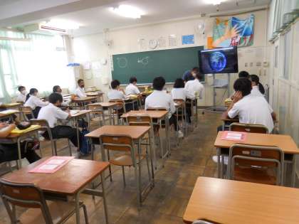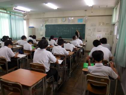 10月11日(月)中間テスト前、子ども達は頑張っています。3年生理科、1年生英語の様子です。
