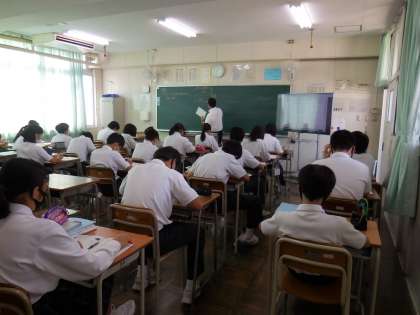 10月13日(水)明日から中間テストです。1年生頑張ってます。音楽、国語、数学の授業の様子です。
