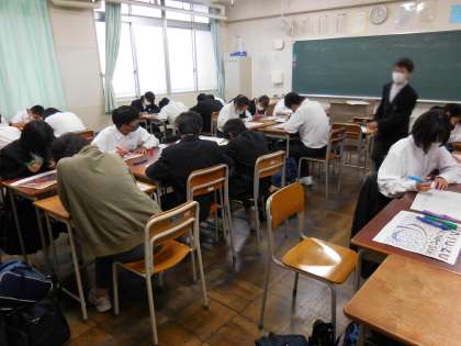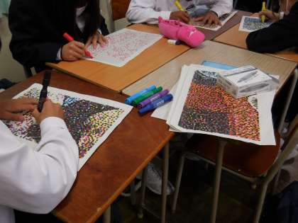 10月25日(月)1年生はモザイクアートに一所懸命取り組んでいます。かなり出来上がっています。