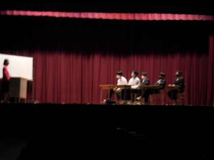10月27日(水)2年生は文化発表会に向けて舞台練習です。頑張っています。