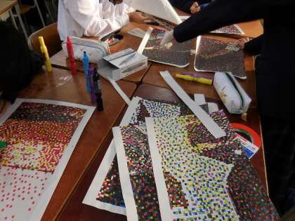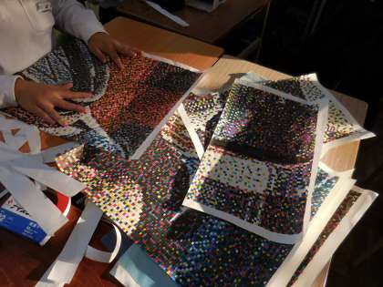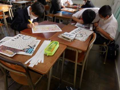 10月27日(水)1年生は文化発表会に向けてモザイクアートの制作を頑張っています。